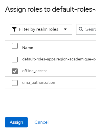 Ajouter le rôle « offline_access » aux utilisateurs, au groupe ou au REALM
